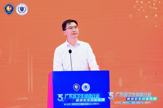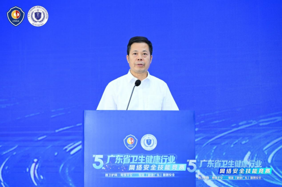 广东省卫生健康委员会二级巡视员赵祖宏在致辞中表示,该竞赛已成为我省卫健系统网络安全练兵、人才选拔的重要平台,此前遴选队伍参加全国竞赛获优异成绩。当前新一代信息技术在推动医疗健康领域发展的同时,网络安全风险也日益凸显,直接关系到患者安全与社会稳定。本次竞赛旨在通过以赛促学、以赛促练的方式,搭建行业交流平台,选拔和培养实战型网络安全人才,全面提升卫生健康系统网络安全防护与应急能力。希望选手们在比赛中锤炼技能、交流互鉴,共同筑牢医疗健康网络安全防线,为健康广东和数字湾区建设贡献专业力量。