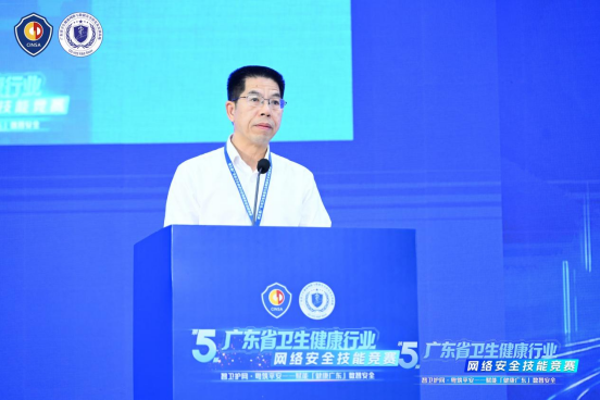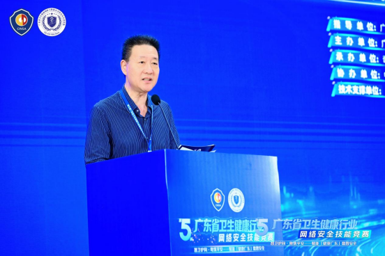 广东药科大学副校长黎锦城在致辞中对莅临指导的各位领导、专家和全体选手致以诚挚欢迎。他介绍,办学六十八载的广药大主动肩负医药卫生健康领域信息化专业人才培养、科技成果转化和社会化服务的高校责任,在省卫健委支持下,牵头组建广东省卫生健康网络与数据安全研究及实训基地等相关平台,实现科研与行业需求同频共振。他强调,网络安全是国家安全和民生保障的“生命线”,卫健领域网络安全关乎患者安全与公共卫生稳定,学校将深化“政产学研用”融合,助力打造湾区卫健网络安全人才摇篮,并预祝赛事圆满。