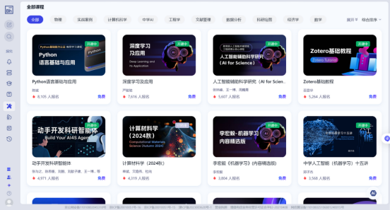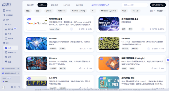 平台提供超200项常用科研工具APP,涵盖绘图、数据分析、建模等,并融合AI课程与竞赛系统,支撑“教-学-研-用”一体化成长。