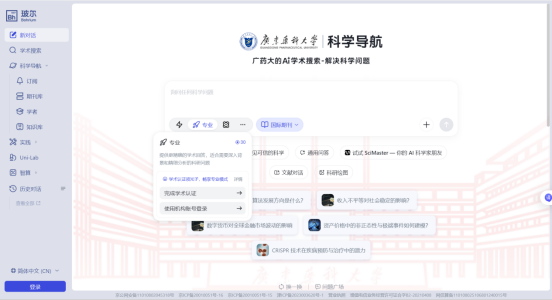 为此,学校正式推出广东药科大学专属版科学导航——全球首个覆盖“读文献-做计算-做实验-多学科协同”的新一代科研知识库与文献开放平台。从精准查找文献、快速解析论文,到一键生成综述,它致力于解决科研各阶段的“卡点”。同时,为帮助师生真正用好这一工具,首门AI科研素养基础课也同步上线。